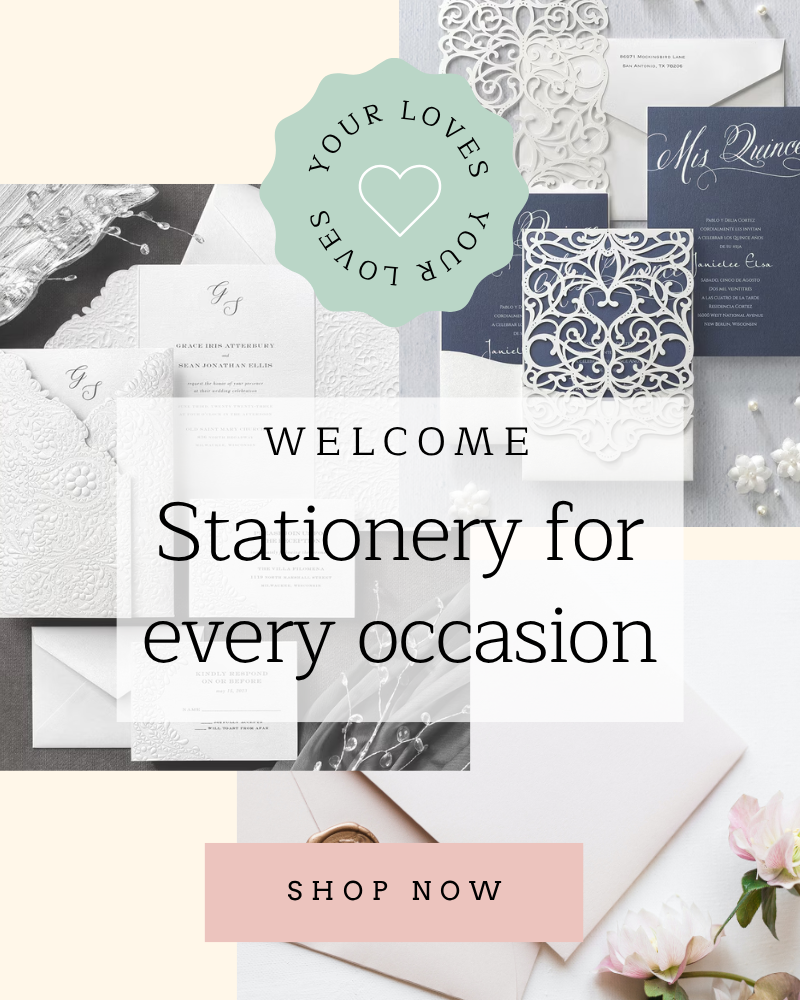 Shop the stationery catalog for customizable and personalized stationery for weddings, events, and celebrations. From elegant invitations to thoughtful paper goods, every design is easy to personalize and simple to order. Make your next event unforgettable with beautiful custom stationery that’s created just for you.
