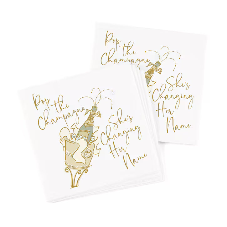 Celebrate her new adventure in style with the Changing Her Name Cocktail Napkin. Featuring shimmering gold and teal inks, these napkins bring retro glam to any bridal shower or bachelorette party, adding a fun and festive touch to every toast. Perfect for toasting to love and new beginnings!